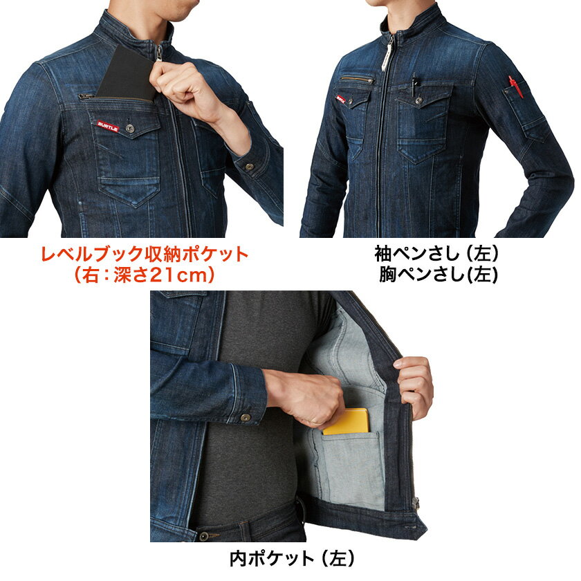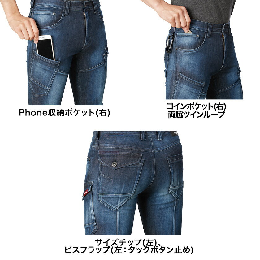 バートル 秋冬作業着 デニム 上下セット 531・532 ブランド・メーカー名 バートル 商品名 531 ジャケット(ユニセックス) 532 カーゴパンツ(ユニセックス) 上下セット 素材 ストレッチデニム(伸長率25%) 製品洗い ブラスト加工 綿99% ポリウレタン1% 詳細 デニム素材に優れたストレッチ性をプラス!細身シルエット&ヴィンテージ感(ブラスト加工)!! !◎デニム加工製品は特性上多少の色差があり、一点一点加工が異なります。