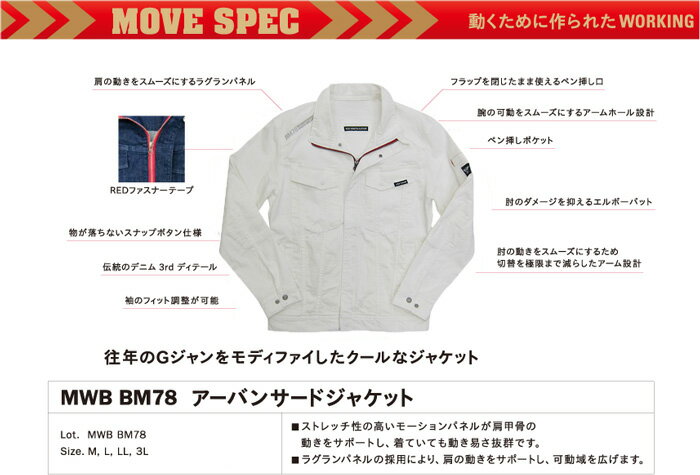 BM78ASJ&BM78MKP 【限定生産商品】アーバンサードジャケット+アーバンカーゴパンツ上下セット 在庫限りで完売 ストレッチ デニム 作業服 夏生地 おしゃれ メンズ かっこいい MWB×BMC 作業着 ミタニコーポレーション 【社名刺繍無料+裾直し無料】 綿98% ポリウレタン2%